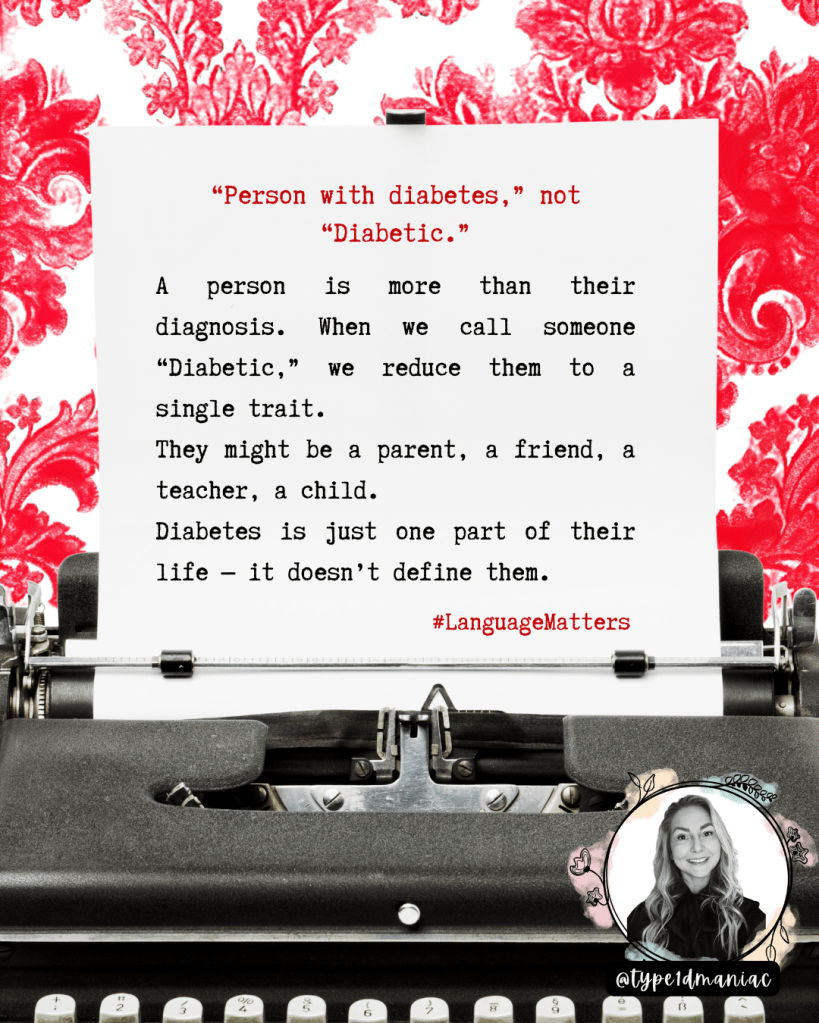 When we were kids, maybe someone told us: “If you keep eating all those sweets, you’ll become diabetic.” Or maybe someone referred to a person by saying: “He’s a diabetic.” Spoke as if that word sum up everything about them. Phrases like these seem harmless — but they’re not. They create labels. They make you feel like there’s something to explain or apologize for.